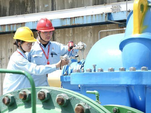 近日,扬子石化水厂炼油水务车间机泵更新完毕,这一公司绿色节能重点项目开始运行。该项目通过更换6台循环水高效节能泵、新增2台管道增压泵,大幅降低系统能耗,预计每年节约电费超300万元。图为8月8日技术人员检测节能泵运行状态。门圣卿摄陶炎文