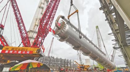 广西石化项目乙烯装置乙烯塔一次吊装成功(图)