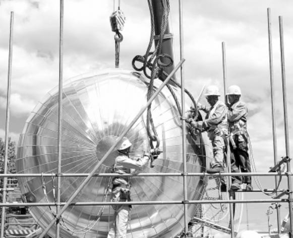燕山石化氢气提纯设施完善项目高低压缓冲塔顺利吊装就位(图)