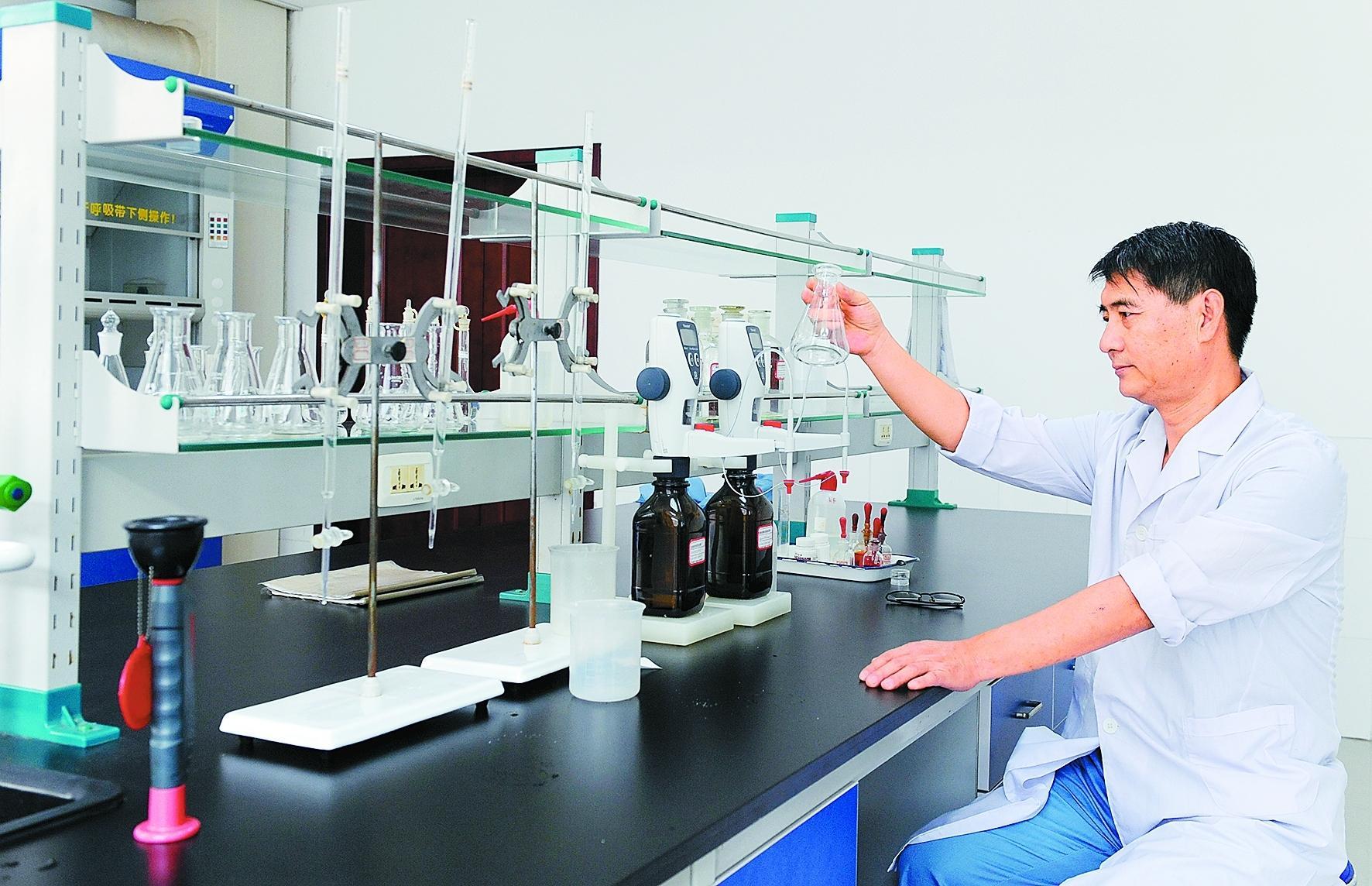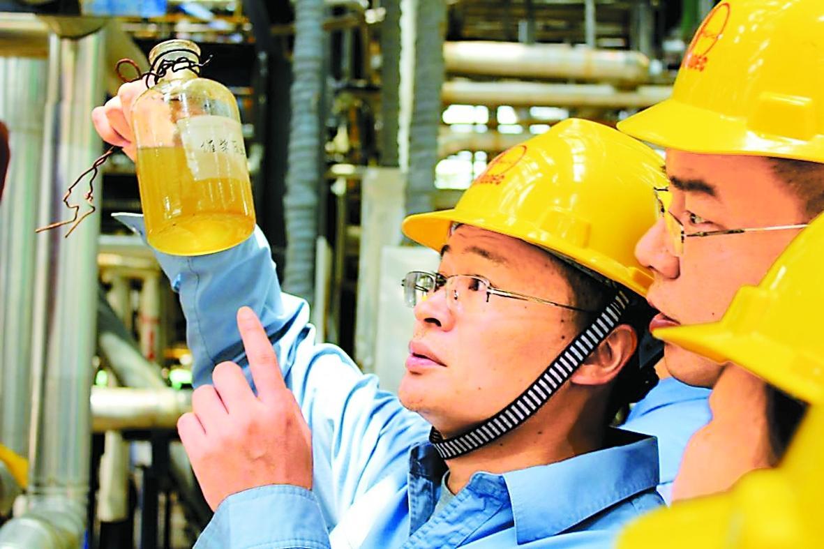 催化剂齐鲁分公司原料分析岗位员工化验分析进厂原料。严承银摄