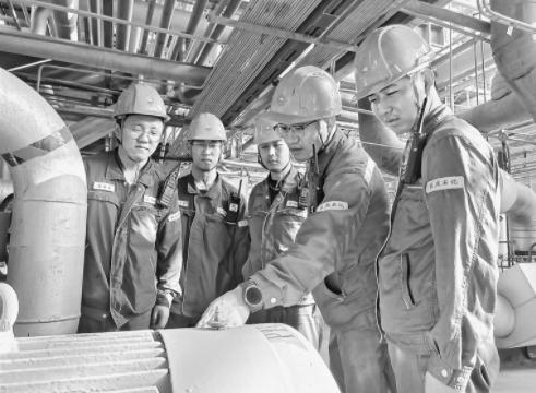 长庆石化炼油二部运行三班员工在现场分析装置长周期运行优化措施。
