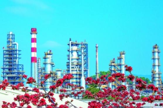 图为广州石化厂区装置与红棉花。