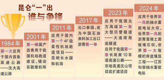 在以质量求胜、求变的道路上,辽河石化从未停步。自20世纪80年代至今,辽河石化已累计生产沥青3300万吨,成功应用在22个机场、22个大型水利工程和多条高速公路建设上,为国家基础设施建设和经济快速发展贡献力量。(曾庆?制图)