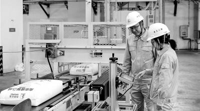 近日,中科炼化包装单元全面投用紫外激光打印,作为中国石化系统内首家使用紫外激光打印的生产线,在提升塑料产品包装质量的同时,预计每年可降低耗材成本约220万元。截至目前,该公司包装单元已经从最初的单线试用,发展到如今的10条包装线全面推广使用。图为12月19日,化工二部员工查看树脂产品包装线紫外激光打印机运行状态。林江海 摄
