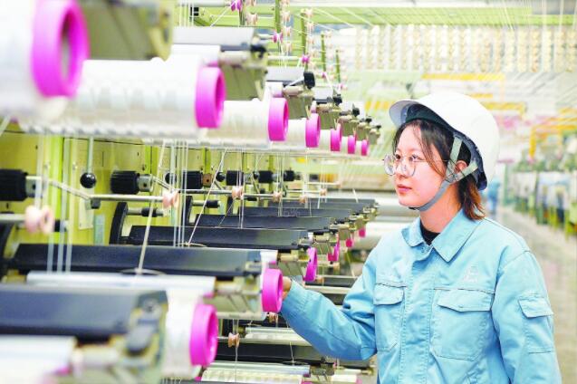 仪征化纤高纤部技术人员检查超高分子量聚乙烯纤维质量。