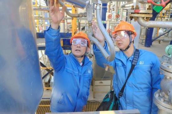 齐鲁石化运维中心严格落实防冻防凝工作要求,各车间梳理防冻凝薄弱部位,强化管控措施落实落地;基层班组每班检查伴热管线、防冻凝设施,防止出现冻凝问题。图为1月8日,该中心橡胶运维车间员工检查乙腈装置总蒸汽阀压力表保温情况。