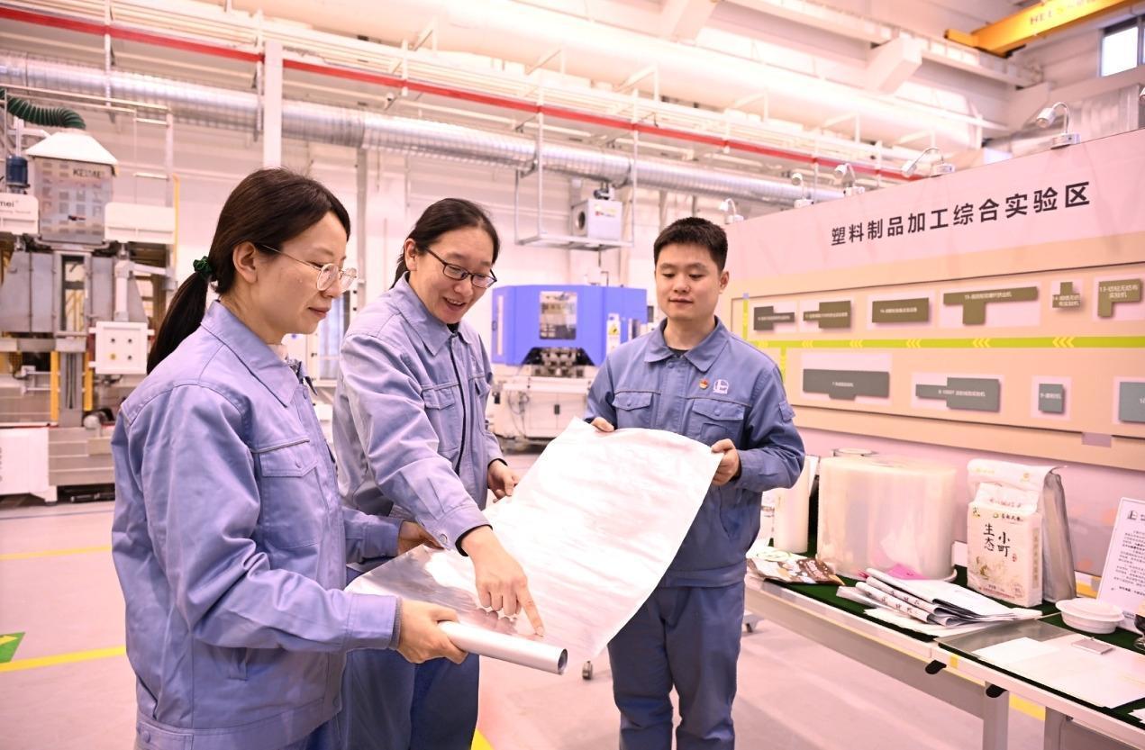 近期,北京化工研究院对电池软包流延聚丙烯(cpp)薄膜专用料试验生产线进行了洁净改造,于1月8日顺利产出高品质专用料,在保证高热封强度的同时,进一步降低了起封温度,增强了软包薄膜的性能。据悉,北化院自主研发的电池软包cpp材料打破了现有的进口垄断局面,实现了软包膜从材料端的国产化。图为科研人员检查薄膜外观。本报记者 胡庆明 摄 潘亚男 文