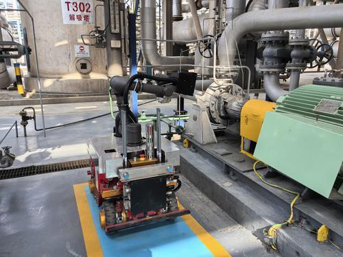 节日期间,湖南石化自主研发的巡检机器人连续上岗。该机器人于去年在公司炼油二部催化装置投用,每小时进行一次现场巡检,每次巡检1小时,采集机泵振动值、轴温等数据约150个,并及时上传异常数值,提高巡检效率。图4为1月29日该机器人对现场机泵的运行参数进行检查。张 勇 摄