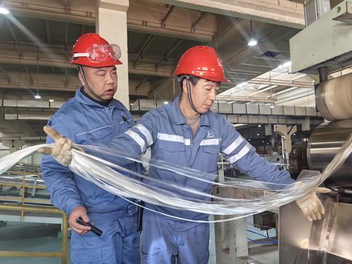 近日,川维化工维纶高强高模纤维产品生产线经过7个月的升级改造,一次投产成功。目前,3条生产线运行平稳,产品质量达到要求。图为2月26日工作人员进行产品出库前检查。李媛媛 摄?