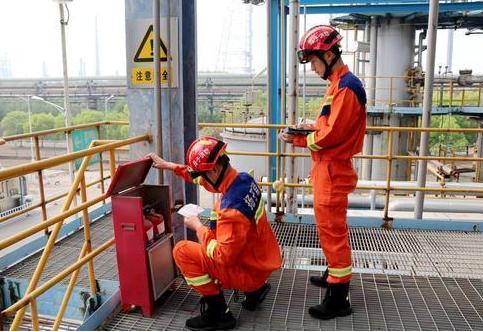 扬子石化消防中心积极履行社会责任,加强与南京新材料科技园合作,为园区提供常态化安全巡查、消防设施检查、河道排污巡查、打非治违检查及应急演练等服务。图为近日,消防队员在南京新材料科技园检查消防设施。