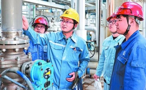 湖南石化己内酰胺部酯化法环己酮装置管理人员为当班员工讲解巡检注意事项。