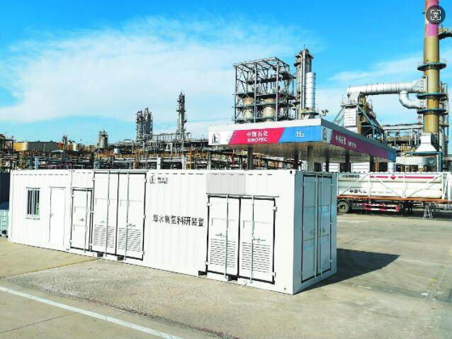 12月12日,中国石化大连院联合青岛炼化公司围绕电解海水制氢技术涉及的关键材料、设备及工艺进行相关研发并取得重大技术创新突破,建成我国首个工厂化海水制氢科研项目,装置产氢量为2×10标准立方米/小时,产出的氢气符合GB/T37244-2018燃料电池车用氢气要求,直接并入青岛炼化厂内氢气管网,加快了电解海水制氢技术的工业化进程。