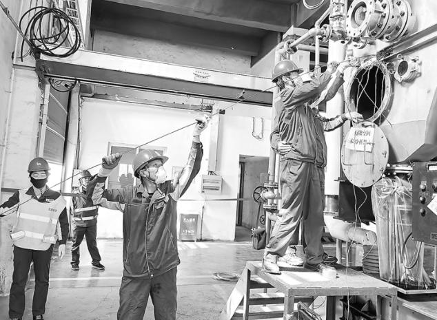 作业人员里应外合,凭借精湛的技术和默契的配合,克服空间受限等难题,最终比原计划提前2个小时完成接线调试,顺利交付生产。
