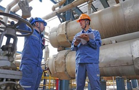 今年以来,青岛炼化聚焦炼油过程优化,扎实开展装置能效对标,稳步推进能效提升项目,深化节能降耗管理,截至6月25日,炼油综合能耗同比减少2.5%。图为近日技术人员在装置现场探讨能耗优化举措。