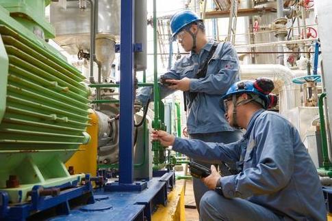 夏季高温来袭,上海石化强化装置安全管理,安排班组员工对高温油泵实施测温测振,并对冷却水、密封油路、压力、温度等进行全面检查,为机泵做好防暑诊断,保障高温环境下机泵正常运行。图为6月24日上海石化3号芳烃装置员工检查高温油泵。