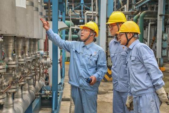 8月以来,扬子石化持续加强乙二醇产品生产装置安全管理,优化操作、加强巡检,为乙二醇产品创效增效奠定坚实基础。图为攻关团队检查现场流程,研讨优化操作。