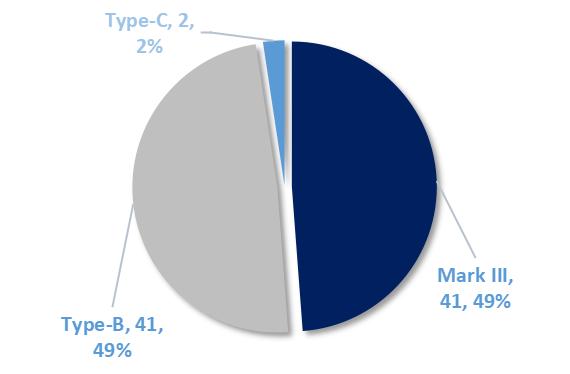 截至目前,在乙烷运输船货物围护系统市场中(运营中和订单数据),B型舱与GTT Mark III薄膜舱双方持平。最新的五个订单,分别由韩国和中国的造船厂承接,全部采用GTT Mark III技术。