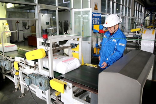 一线员工精心做好聚烯烃产品包装输送工作。 冯作文 摄