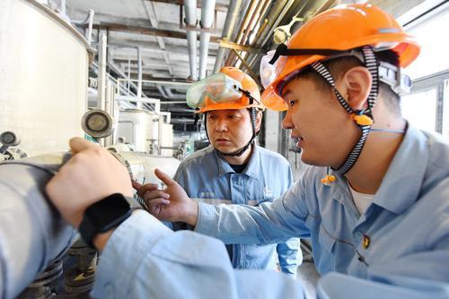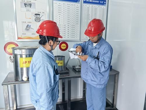 图2:近日,安庆石化扎实开展“质量月”活动,深化设备管理,对机泵轴承箱、油杯、润滑油“三级过滤”制度执行等展开拉网式排查,为设备稳定运行夯实质量根基。图为员工检查设备。郝书敏 摄