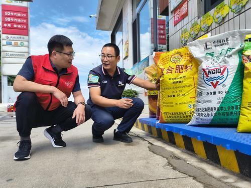 南化永大公司化肥销售人员在山东省淄博市沂源县调研时发现,买肥难、跑远路是沂蒙山区果农普遍面临的问题,于是与山东淄博石油对接,将红三角牌化肥引入当地加能站销售,发挥品质可靠、购买便捷优势,打通山区农资供应的“最后一公里”,目前已覆盖当地22座加能站。图为9月24日化肥销售人员向加能站站长介绍当地用肥特点。裴 昱 摄 王 稳 文??????