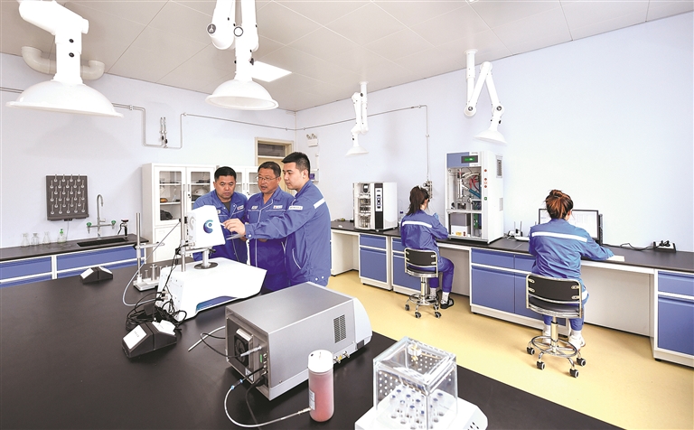 润滑油公司攻克高铁润滑油难关,发明核心添加剂、新型润滑油,广泛应用于航空航天、工业机器人等七大领域。图为润滑油公司首席科学家伏喜胜开展齿轮润滑油及添加剂的研究工作。金添 摄