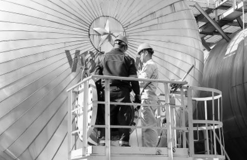 10月23日,镇海炼化千万吨级4号常减压装置检修结果显示,其电脱盐罐沉渣极少、罐壁洁净。这标志着镇海炼化在全国同类装置中首次应用的沉渣冲洗顺控系统取得显著成效。该系统自投用以来,可实现电脱盐罐沉渣冲洗的自动化操作,仅此次检修,就将原本近1个月的清罐时间缩短至5天。图为检修清罐时,工作人员打开电脱盐罐人孔进行检验。