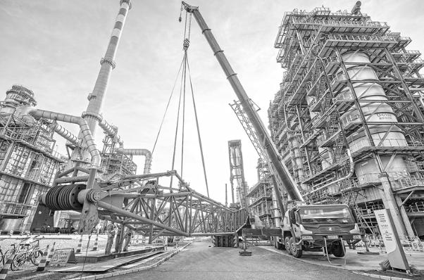 本次检修预计投入各类机具7800余台套,目前98%已全部就位。其中,承担外取热器管束更换任务的“钢铁巨人”——催化联合装置750吨吊车,已完成组装与调试,这是本次检修中规格最大的核心设备。
