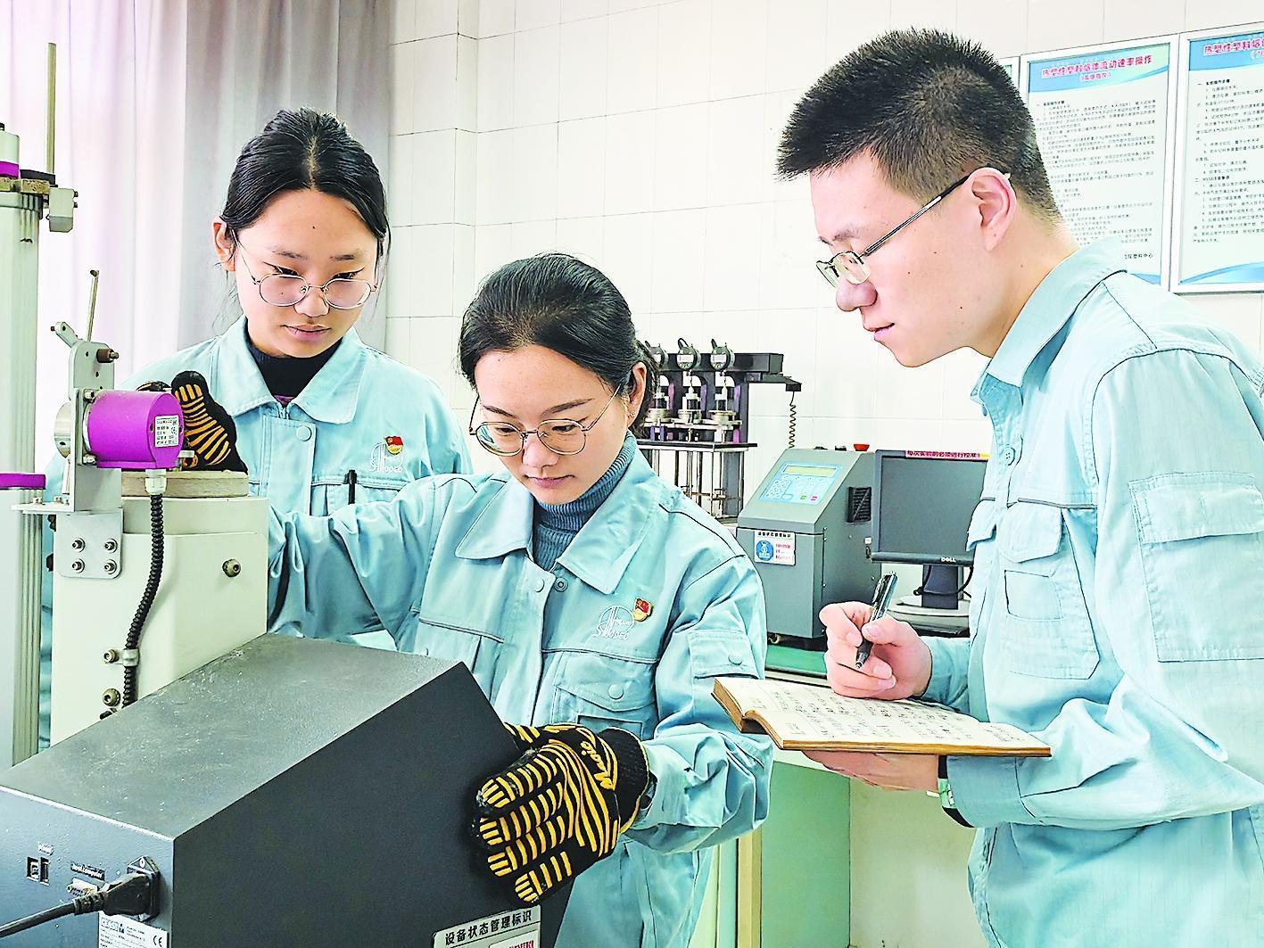 扬子石化攻关项目组成员测试产品参数。卞海珠摄