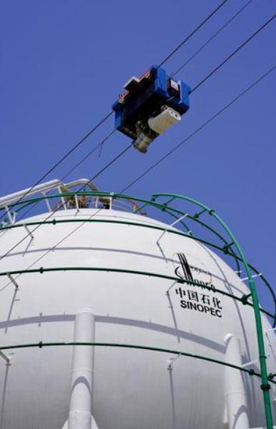 在镇海炼化厂区的球罐区域,抬头可见小巧的飞索智能巡检机器人沿高空架设的缆索平稳运行,开展空中巡检作业。“球罐区管线复杂,常见的轮式机器人容易被地面障碍阻挡,而飞索智能巡检机器人能沿空中缆线行走,有效避开障碍,覆盖人工难以抵达的区域。”1月2日,储运一部员工张鸣伦指着空中“飞行”的飞索智能巡检机器人介绍道。