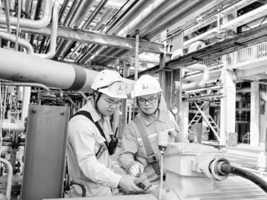 1月底,茂名石化通过攻关1号延迟焦化装置生产工艺,成功产出首批Ⅰ类预焙阳极用石油焦,并于2月11日将产品交付客户。该产品是电解铝用预焙阳极的关键原料,属于高附加值化工产品。此次首批产品的产出和交付,标志着该公司在高端碳材料领域实现新突破。图为2月12日员工对装置进行检查,确保设备稳定运行。