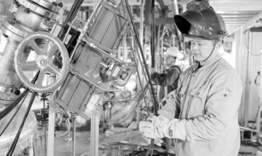 湖南石化加强年产17万吨高性能环氧树脂项目建设安全管理,针对春季多雨、孔洞临边作业交叉等情况,强化现场直接作业环节和承包商等管理,落实设备防雨、线路防水措施,狠抓规范施工监管,确保项目建设有序推进。图为3月27日施工人员在进行设备安装作业。