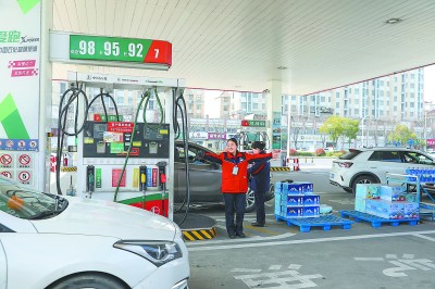 安徽石油全力拓市攻坚创效,截至3月27日,成品油零售量同比显著增长,经营总量创历史同期新高。图为近日合肥石油西坝口加能站员工热情服务客户。孙德荣 摄