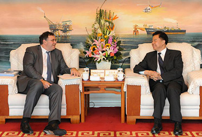 3月23日上午,总公司董事长王宜林在北京中国海油大厦会见了来访的道达尔集团首席执行官潘彦磊,双方就国内外勘探开发、液化天然气等方面的合作深入交换了意见,并表达了进一步在这些领域寻求机会、扩大合作的