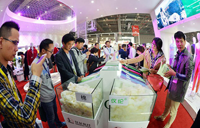 仪征化纤展台新品吸引客户眼球。