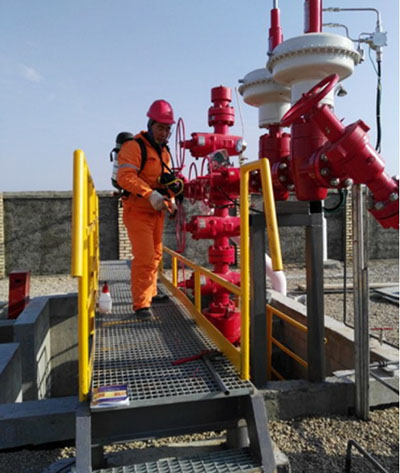 这三口单井分属不同气田,相距较远。TEL-101井位于土库曼斯坦和乌兹别克斯坦交界处,是一口特殊的边境井,距离最近的营地也有将近20公里。ILA-101井和Cha-105D井属土库曼斯坦阿姆河B区集输三阶段气田项目,是罕见的高压低产井,产液多、压力高,投产试运十分困难,由于当地昼夜温差大,投产过程中两次出现“冰堵”。开工投产人员通过加注防冻剂和降压解堵等组合措施保障投产顺利进行。截至3月17日,最后一口单井Cha-105D完成了72小时性能
