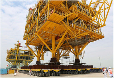 5月16日上午,由中石化石油工程建设有限公司石油工程设计公司设计的平北二期WHPB平台在中海油珠海海工建造基地顺利完成装船。本次装船采用SPMT小车(自行式液压平板车)方式,经过两个多小时的紧张工作,平台在德渤2驳船就位,焊接固定工作完成后择日出海安装。
