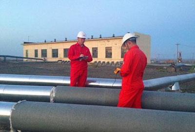 图为技术人员正在测试管线保温材料。汪进王玉石摄影报道