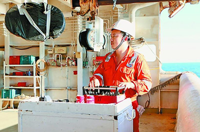 5月的南大西洋高纬度海域正处于深秋季节,一轮又一轮狂风急浪侵袭着正在南美阿根廷海域施工的东方物探先锋号船队。