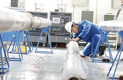 6月12日,“贪吃蛇”系统维保团队成员在燕郊科技园内对刚从海上完成作业的“贪吃蛇”系统进行联调测试维保。这支维保团队完成了60串共计360节“贪吃蛇”系统的维保,及时保证了现场作业的设备需求。通过有效的后勤保障,中国海油自研“贪吃蛇”系统在2017年已经优质高效地完成了18口井19井次的作业,总进尺11294米,预计第二季度作业量将达到25井次,相较去年同期有大幅增长。