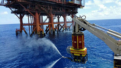 国内首次使用ROV携带高压水枪进行导管架大面积海生物清理(图)