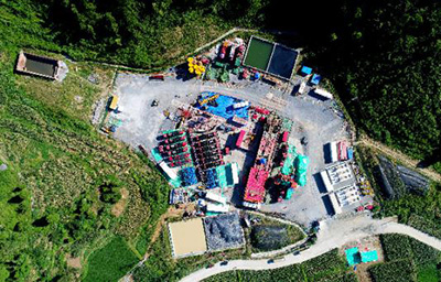 俯瞰焦页194-2HF井压裂施工现场。
