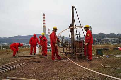 图为1月7日,地震勘探施工方在净化厂开展钻井施工,试验地震对装置的影响。
