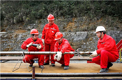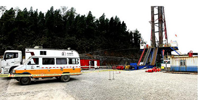 焦页2-5HF井是涪陵页岩气示范区的一口重点长水平段水平井,井深5965米,水平段长3065米。因其水平段长、井斜大、造斜速度快,牵引器测井施工难度非常大。施工前,涪陵页岩气公司和测录井公司专门组织技术人员分析该井井身结构,并进行技术讨论,提前确定了牵引器减速器的减速比,优化仪器串结构,并制定了相应的应急预案。3月12日凌晨3点,JH-CJ016队在焦页2-5HF井现场从井内缓缓起出测井仪器串,历时23小时,顺利完成该井固井质量牵引器测井任务。