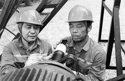 齐鲁石化塑料厂员工对高压聚乙烯装置压缩机熔断杆系统进行技术攻关改造,实现对压缩机连杆轴瓦温度的连续监控,避免了误报警和故障停机,确保装置安全平稳生产,降本增效显著。图为员工在装置现场研究技术改造项目。马连军 摄