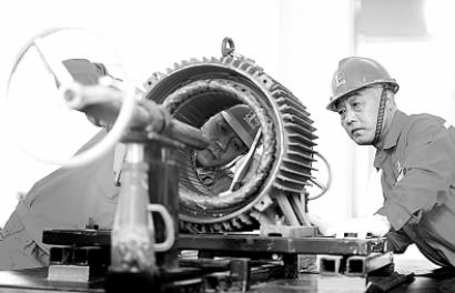 图为9月27日,该厂专业维修人员对失磁的永磁电机进行充磁修复。王禄摄