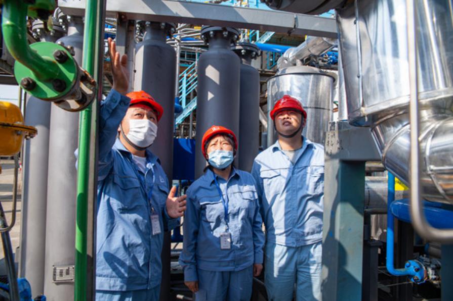 中国石化新闻网讯近日,中国石化首套拥有自主产权技术,能生产燃料电池级高纯氢气的试验装置在高桥石化开工一次成功,标志着中国石化新能源战略转型走出重要一步。作为集团公司“十条龙”重点科研攻关项目之一,该试验装置采用大连石油化工研究院自有专利技术,能生产满足燃料电池车用氢气纯度为99.999%的高纯氢气。图为装置技术人员正在现场调试试验装置运行参数。