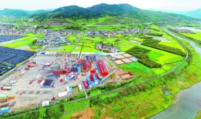 日前,华东石油局重庆页岩气有限公司胜页2-11HF井完成12段压裂施工,创国内页岩气水平井单日单井单机组压裂段数最高纪录。国内首个页岩气全电压裂与全井无限级压裂滑套的组合配套模式在该井成功实现,有力推动页岩气井压裂施工提速增效,为该区域常压页岩气效益开发打下坚实基础。图为3月25日胜页2-11HF井压裂施工现场。