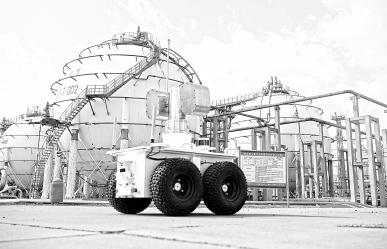 日前,青岛炼化试用智能巡检机器人,完成机器人5G模组调试工作,实现机器人传感器数据和视频影像实时高速传输。该机器人投用后,可有效提高巡检效率,确保设备安全可靠。图为智能巡检机器人在罐区进行现场调试。刘强摄