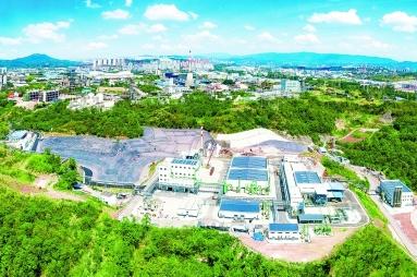 该废物处置中心位于重庆市长寿经开区,由川维化工、重庆财信环境资源股份有限公司和长寿经开区三方合资打造,创造了同行业最快投产纪录,每年可接收处置一般固废9.36万吨、危废6.24万吨,接收处置种类包括《国家危险废物名录》42个大类442个小类危险废物,是西南地区规模最大、固废处置工艺最广、危废处置种类最全的工业废弃物处置中心,也是中国石化打造“无废集团”和重庆市打造“无废城市”建设的重点项目,对推动西南地区经济社会和生态环境协调发展具有深远意义。图为中国石化西南危险废物处置中心全景。