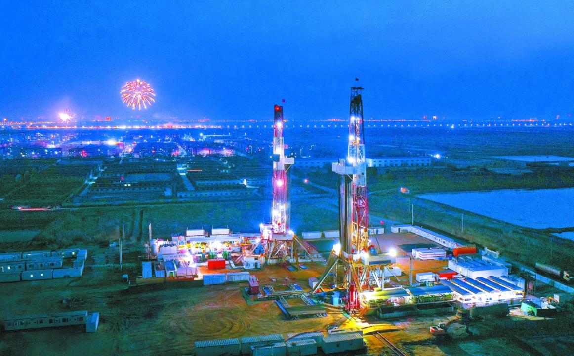 今年以来,胜利油田跟踪督导井位设计,优化钻井生产组织运行,持续加快产能建设步伐,累计投产新井102口,为稳产上产打下坚实基础。图为2月5日正月十五,丰页1-12HF井和丰页1-13HF井灯火通明的施工景象,成为元宵夜一道亮丽的风景线。